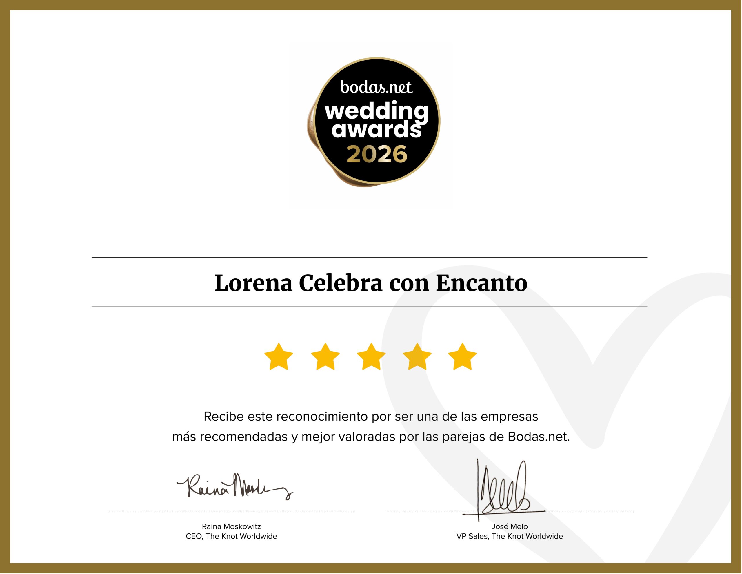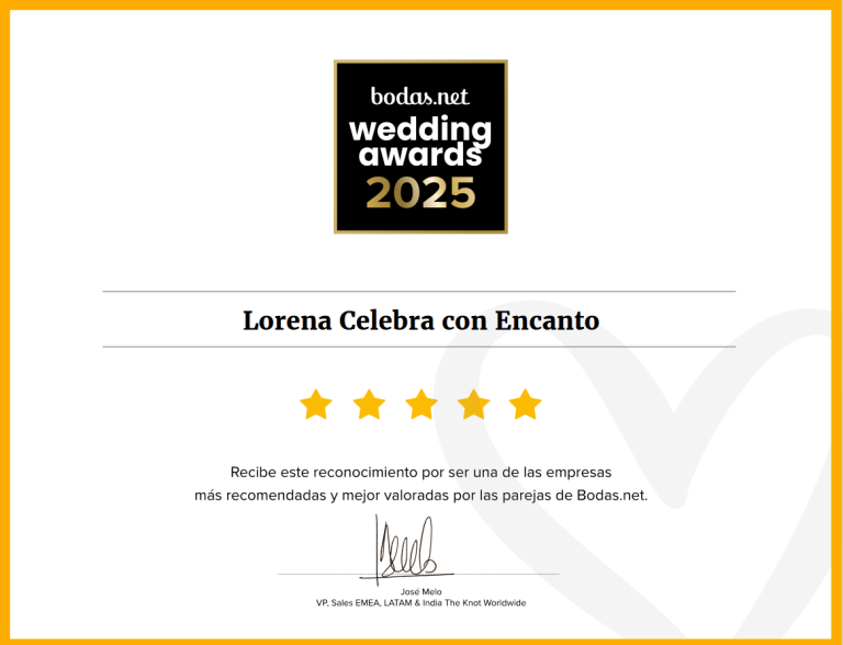 Cada boda en la que he tenido el honor de participar lleva consigo una historia única, momentos llenos de amor y detalles pensados con el corazón. Recibir el Wedding Award 2025 y 2026 como una de las empresas mejor recomendadas es mucho más que un reconocimiento para mí; es la confirmación de que lo que hago sigue llegando al alma de quienes confían en mi trabajo.